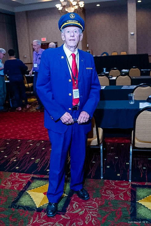 “I was raised in a railroad family in Sheridan Wyoming.   My Uncle Roy Bosley was a bridge and rail maintenence forman, my Uncle Frank Bosley worked in the yards at Sheridan.  My father, Harold, came down with MS (Multiple Sclerosis) and retired from the railroad after 17 years service.  He was a Brakeman and a Conductor on the CB&Q. . He sold insurance for the BRT for several years.  He was a super volunteer and fund raiser for the MS society. He stayed in Sheridan and was helped greatly to be independent as the MS took over by my brother John.   He represented the UTUIA as Volunteer of the year for the local Union, then won the national volunteer for the UTUIA, then represented the UTUIA at the national Fraternal Congress, and won there as National Volunteer of the year.  I took him to Nashville and he received a national award.  He was pretty proud of that.  His favorite saying when people asked him about having MS was: “It is mind over matter.  If you don’t mind, it don’t matter.”  He lived to be 83 which wasn’t to bad for a person the doctors said would be dead by age 55. “